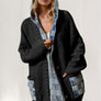 Double Take Full Size Hooded Denim Spliced Sweater Cardigan