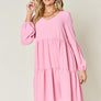 Double Take Full Size V-Neck Balloon Sleeve Tiered Dress with Pockets