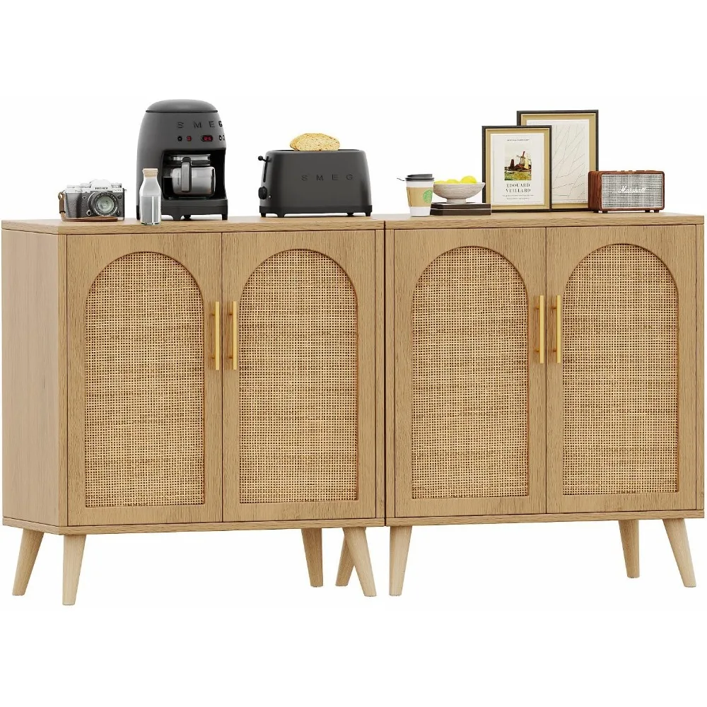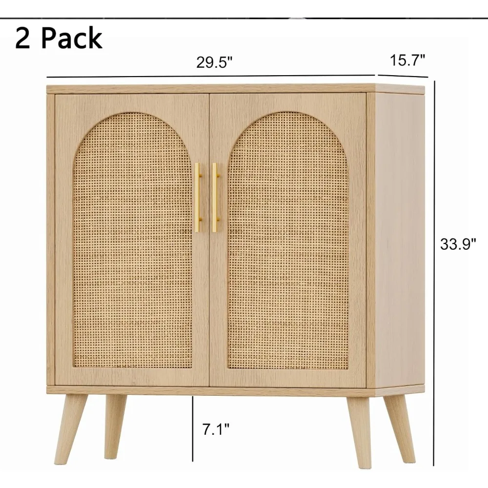 Living room cabinet,Set of 2 Rattan Storage Cabinet with Doors, Accent Bathroom Floor Cabinet, Modern Sideboard Buffet Cabinet