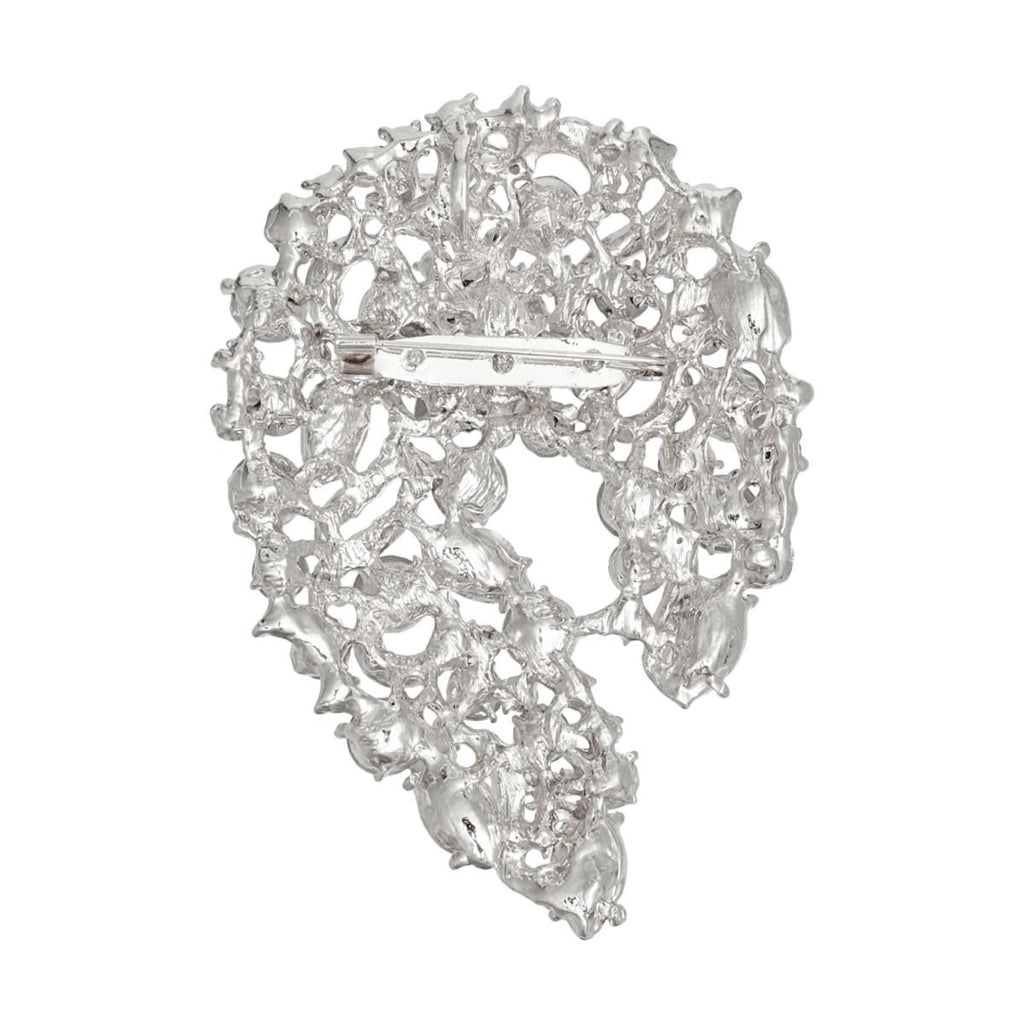 Women's Brooch Pin. Vintage Luxury Silver Metal with Clear Glass Rhinestones and Crystals Curved Hook Shaped Brooch. Safety Pin Hook Closure.