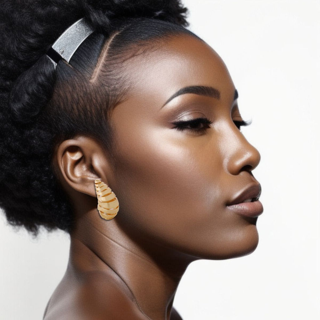 14K Gold Dipped Hypoallergenic Brass Hollow Spiral Cone Shaped Stud Earrings. Post Backing. 3.3 cm/1.3 inches.