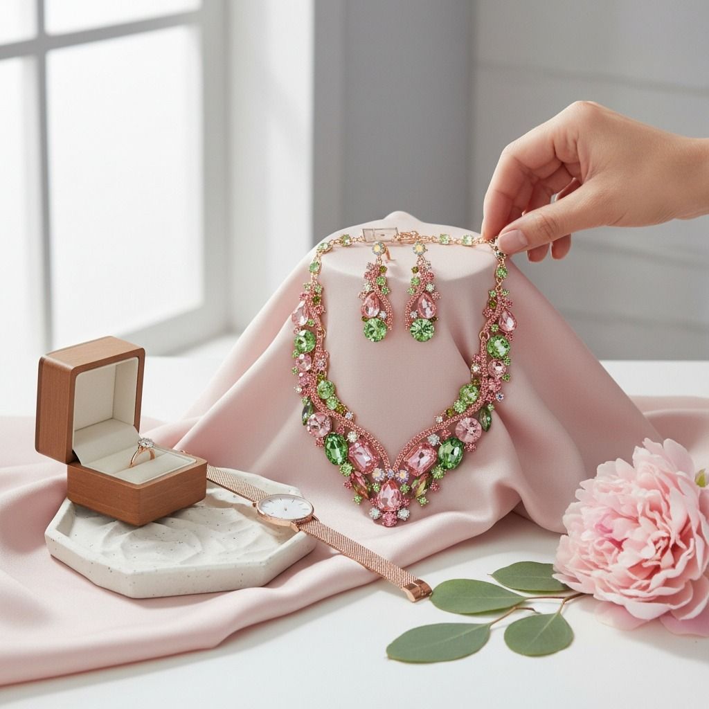 AKA Pink Green Crystal Cluster V Formal Necklace