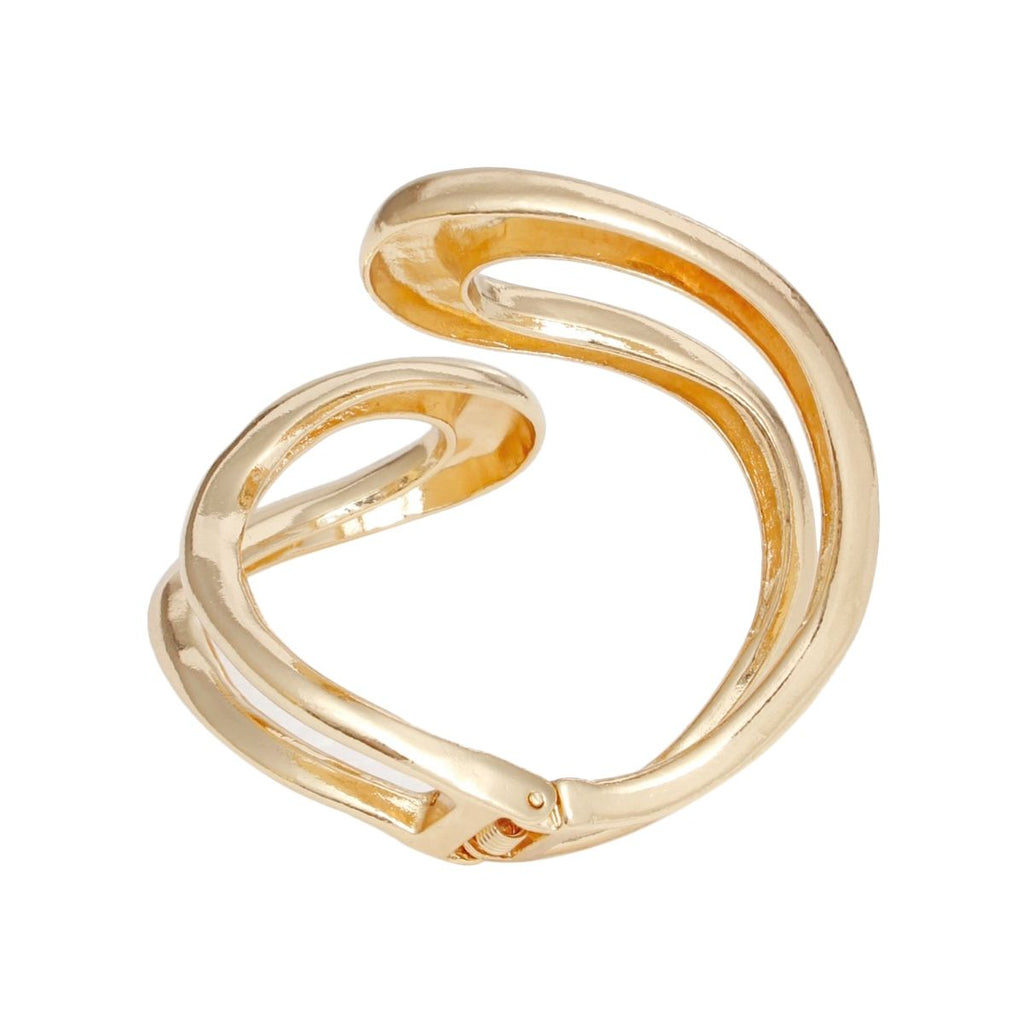 Cuff Rigid Looped Gold Metal Hinge Bracelet