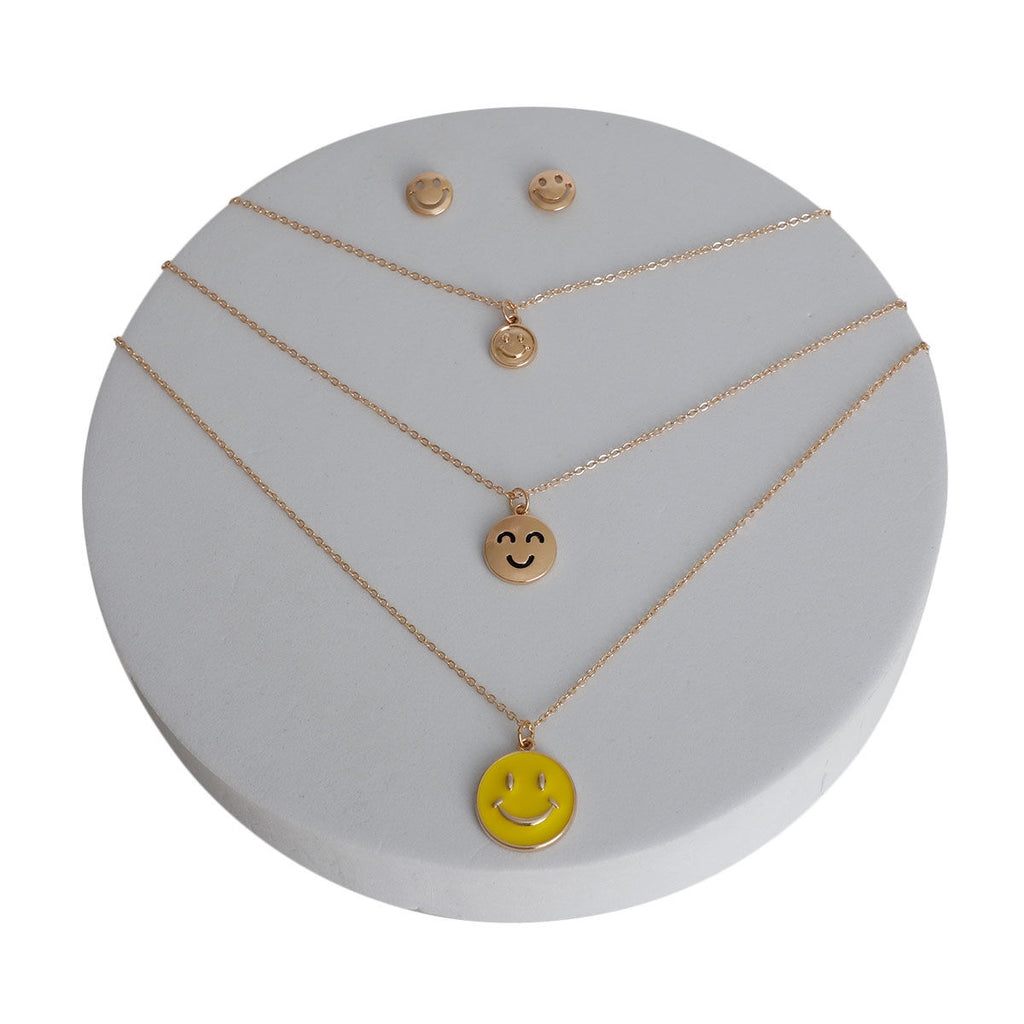 Gold 3 Layer Yellow Smiley Face Necklace
