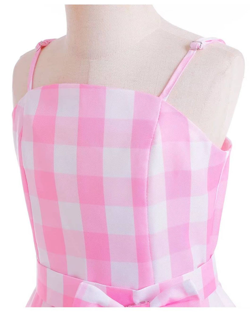 • Iconic Movie-Accurate Design: Become the living doll in this vibrant pink plaid gown, meticulously crafted to mirror Margot Robbie’s show-stopping princess look from the blockbuster Barbie movie.