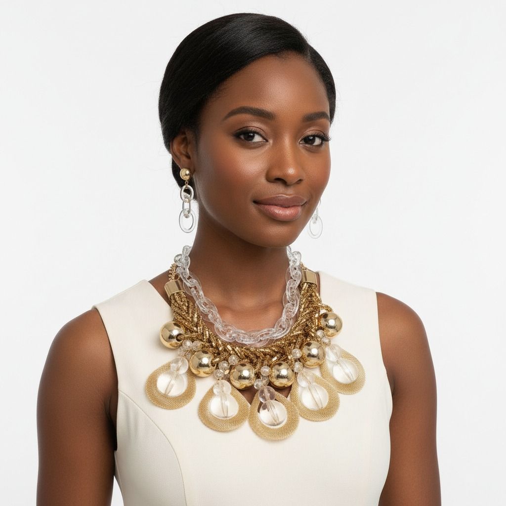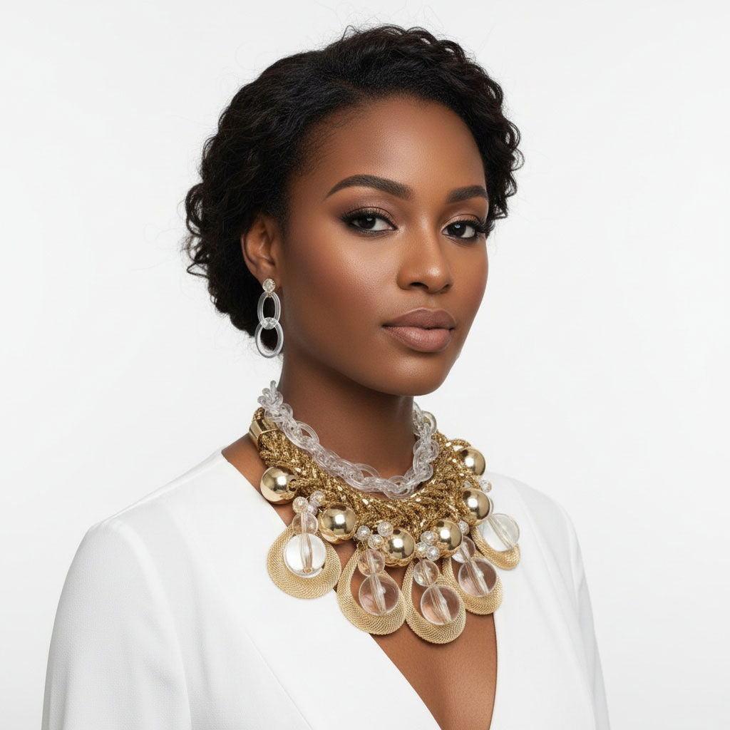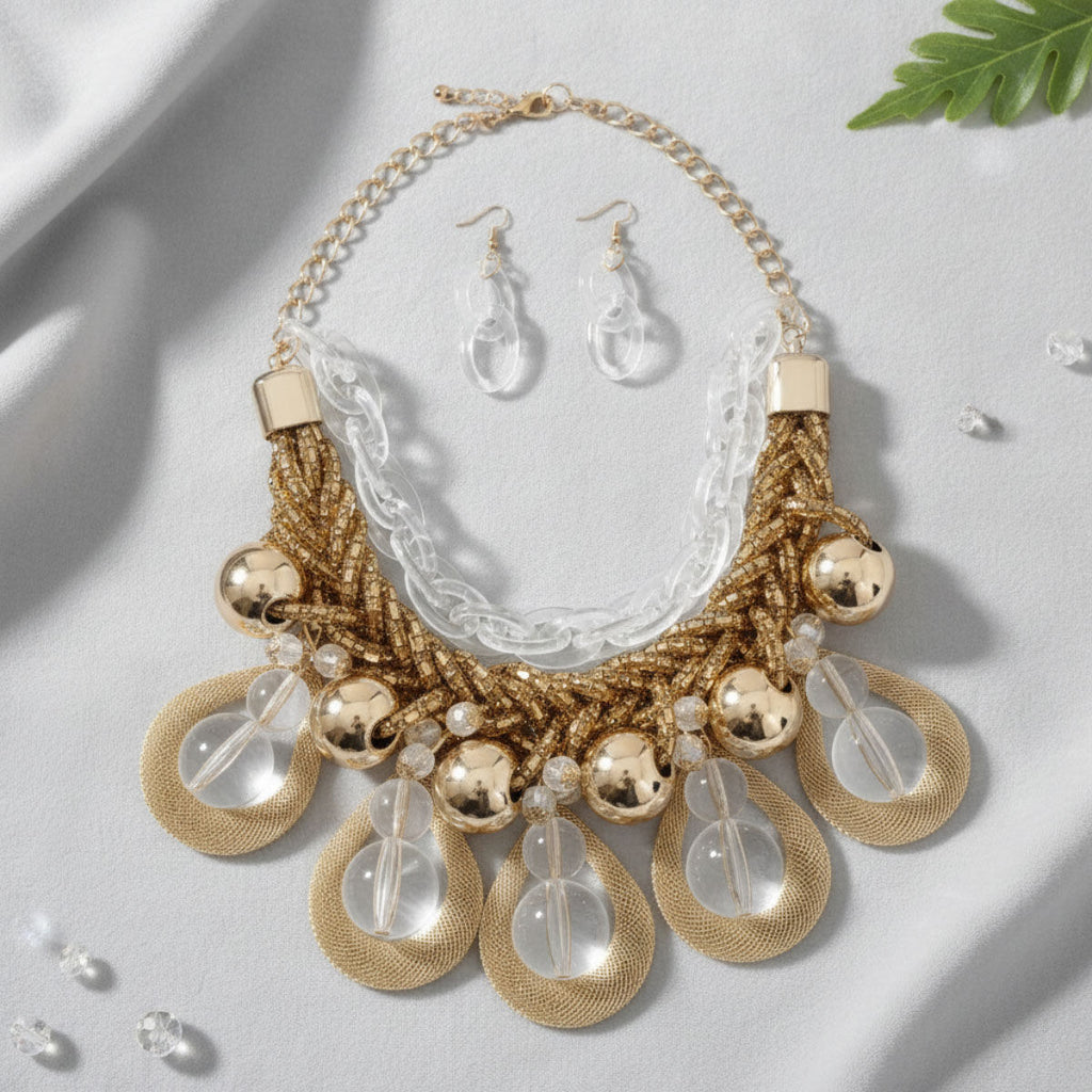 Dazzling Gold Teardrop Cascade Necklace Ensemble