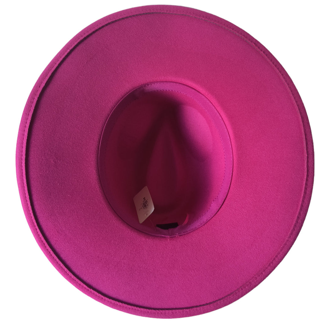 Elegantly Styled Dark Pink Hat with Wide Brim and Dazzling Cubic Chain Detail Fedora Panama Cap - DJ Comics