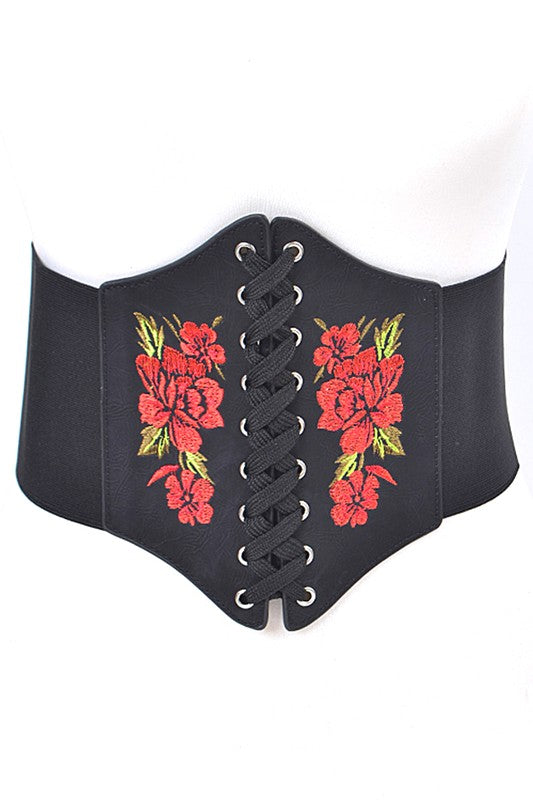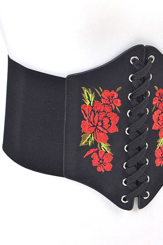Embroidered Flower Lacing Corset Belt
