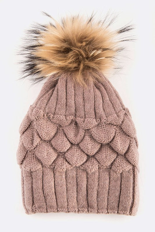 EMMEZ Raccoon Fur Raised Knit Soft Beanies