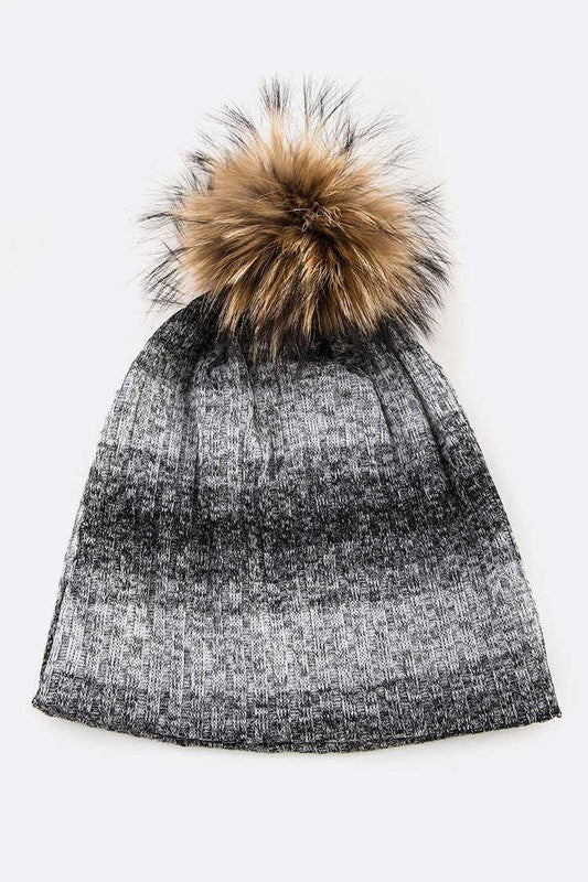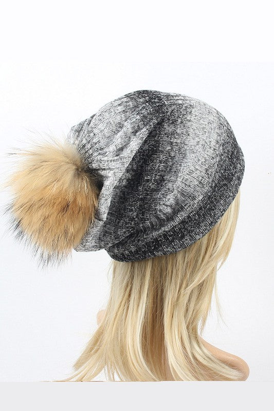 Faux Fur Stripe Cotton Blend Slouchy Beanie