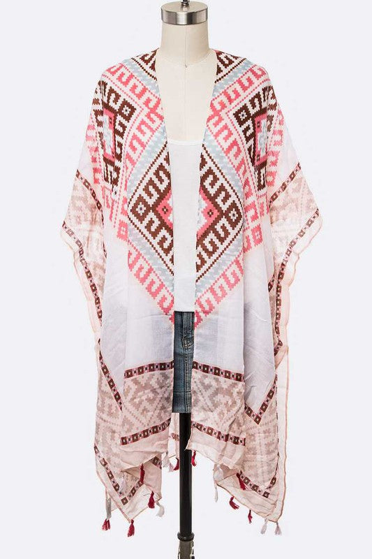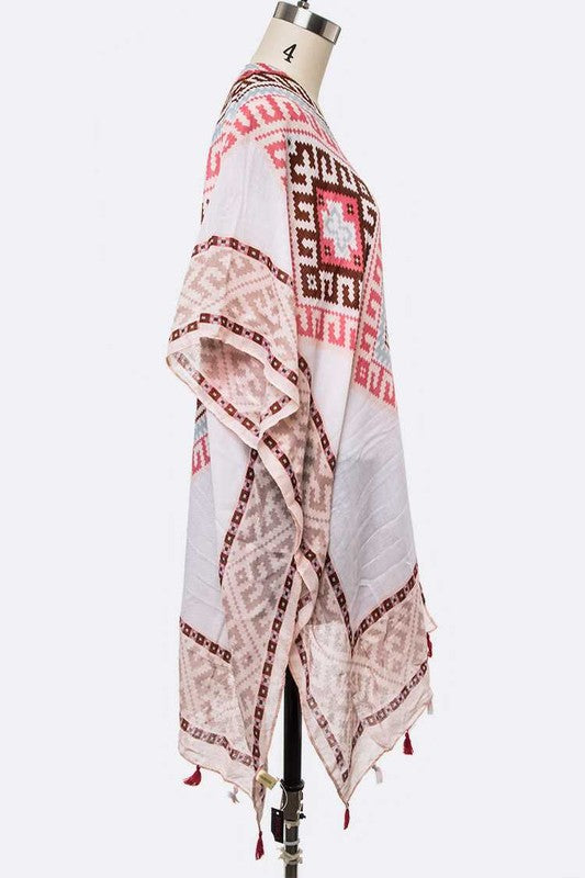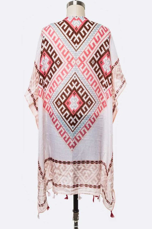 Fringe Tassel Aztec Printed Kimono Cardigan