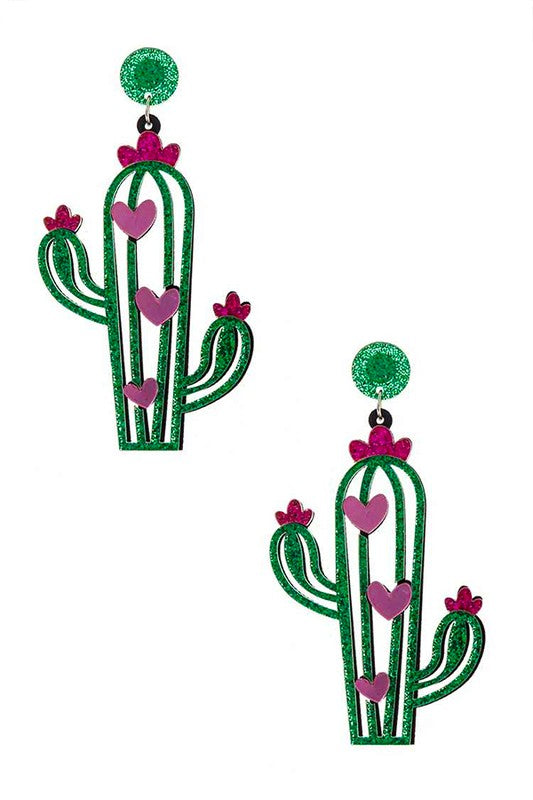 Glitter Cutout Cactus Earrings