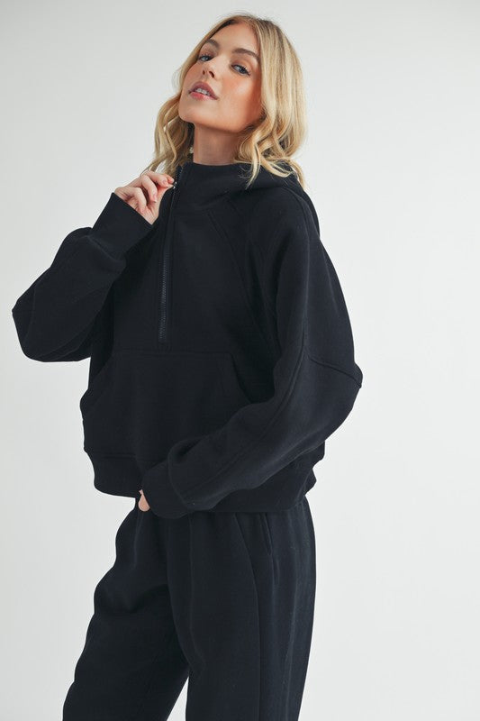 Aemi + Co Half Zip Raglan Sleeve Hoodie with Kangaroo Pocket