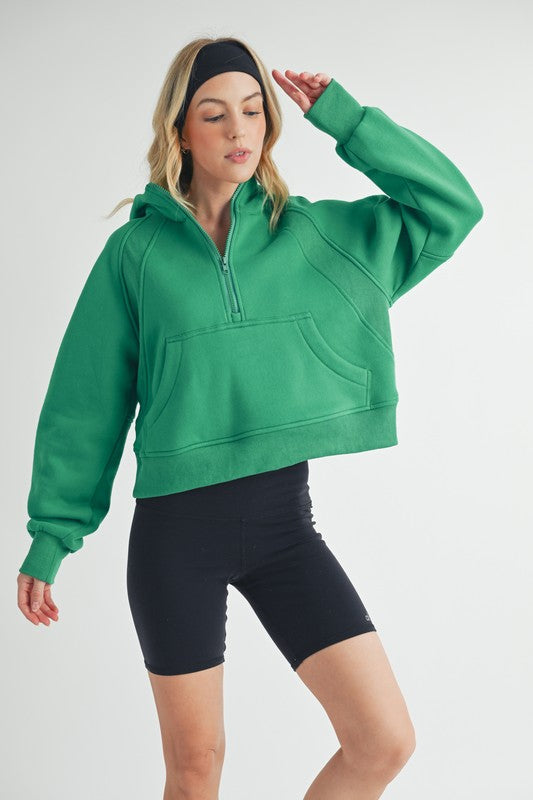 Aemi + Co Half Zip Raglan Sleeve Hoodie with Kangaroo Pocket