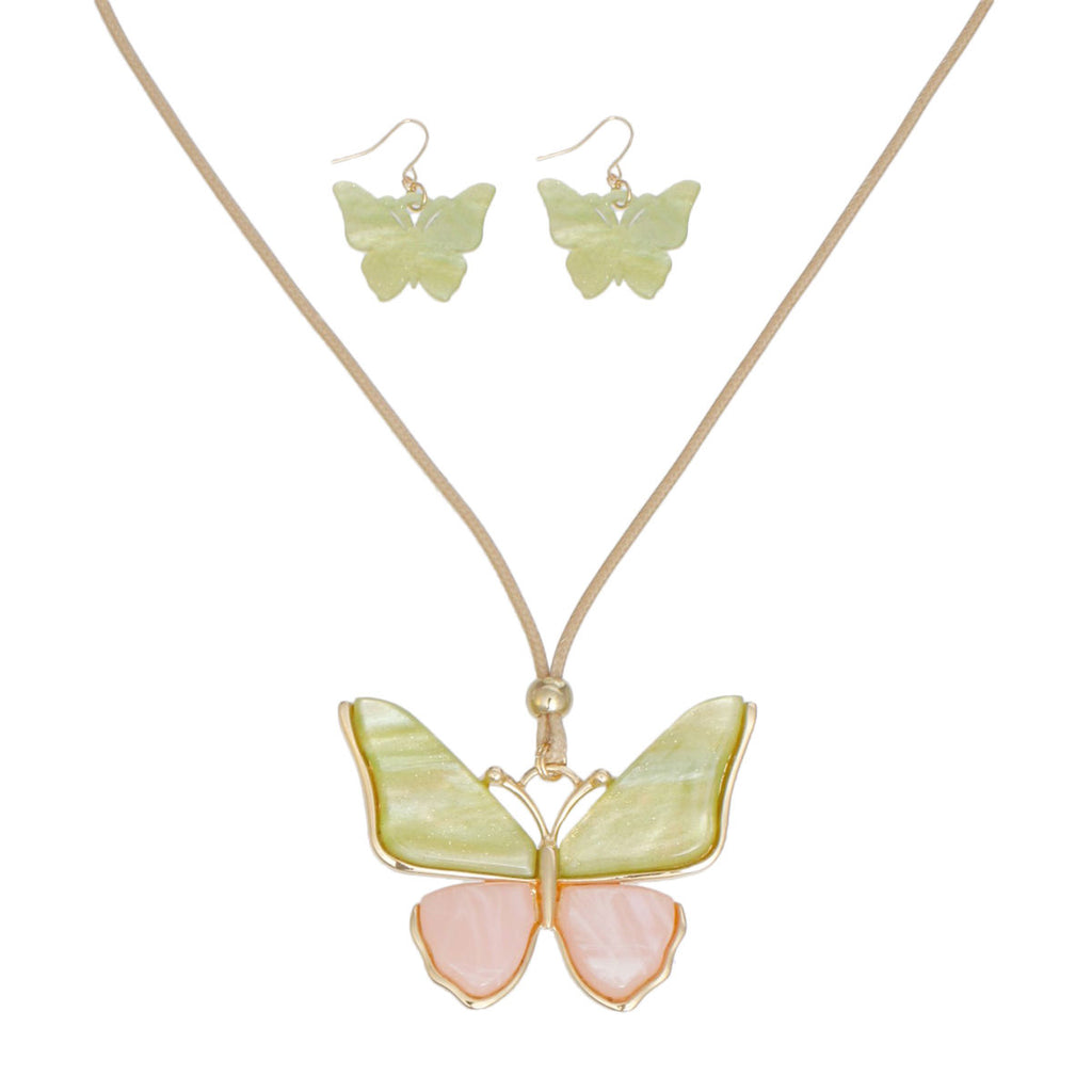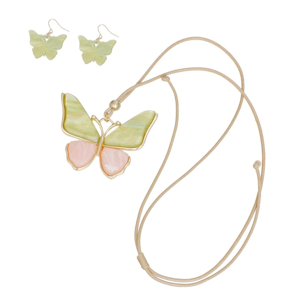 AKA Pink Green Butterfly Adjustable Cord Necklace