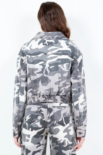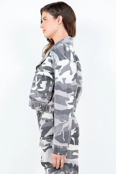 American Bazi Camouflage Zip Up Cropped Rider Jacket