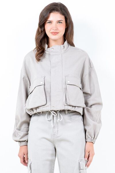 American Bazi Drawstring Hem Cargo Pocket Cropped Worker Jacket