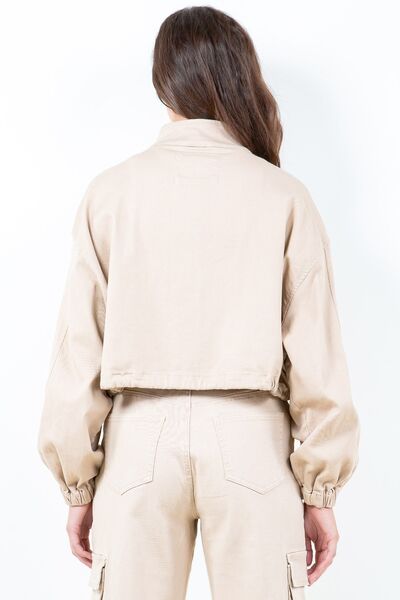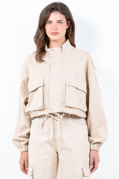 American Bazi Full Size Drawstring Hem Cargo Pocket Cropped Worker Jacket Plus Size