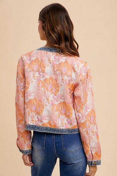 Annie Wear Floral Jacquard Denim Contrast Button Down Jacket