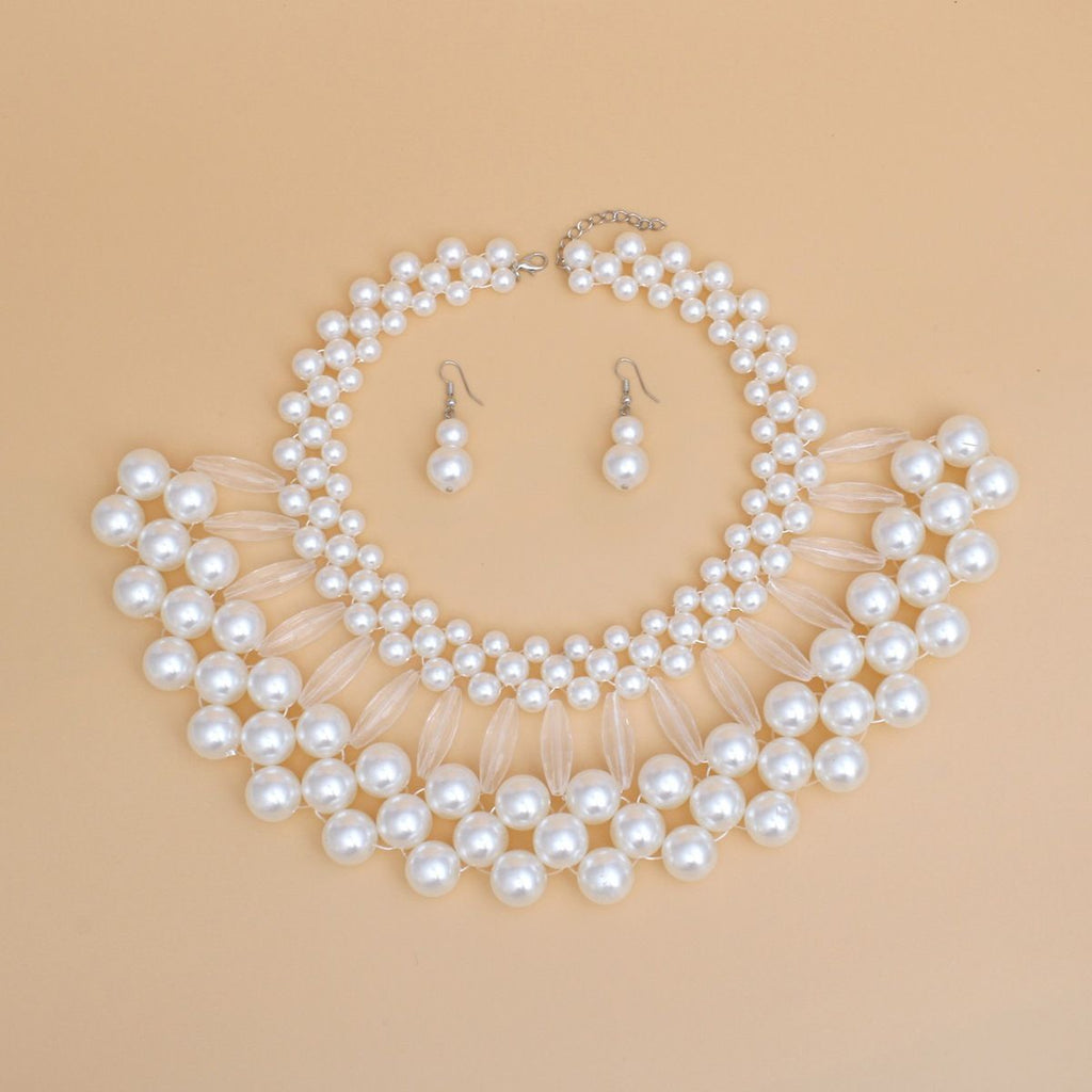 Bib White Pearl Vintage Collar Necklace Set Women