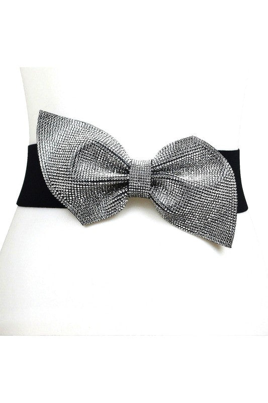 - Oversized Rhinestone Bow Ribbon Elastic Waist Belt