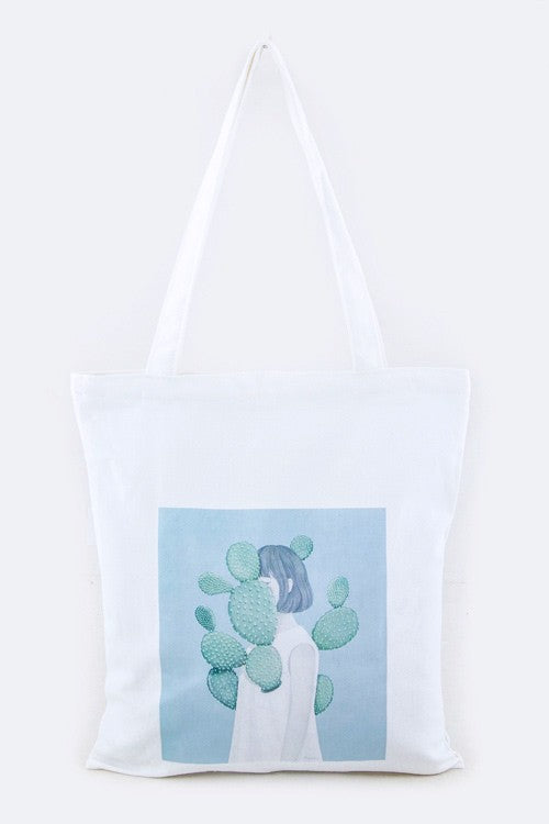 Cactus Girl Canvas Tote