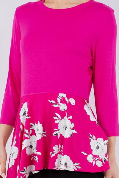 Celeste Full Size Floral Asymmetrical Hemline Round Neck Top Plus Size