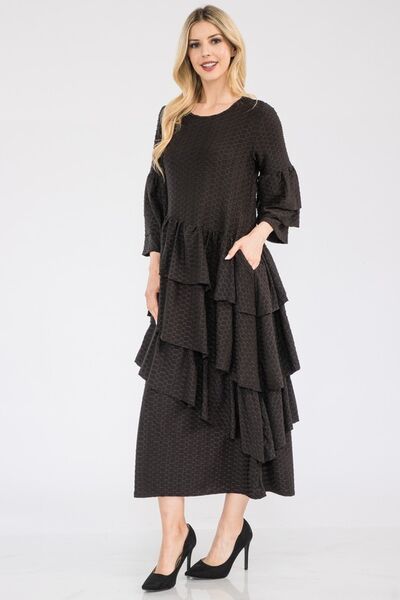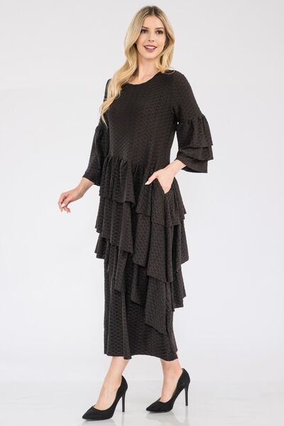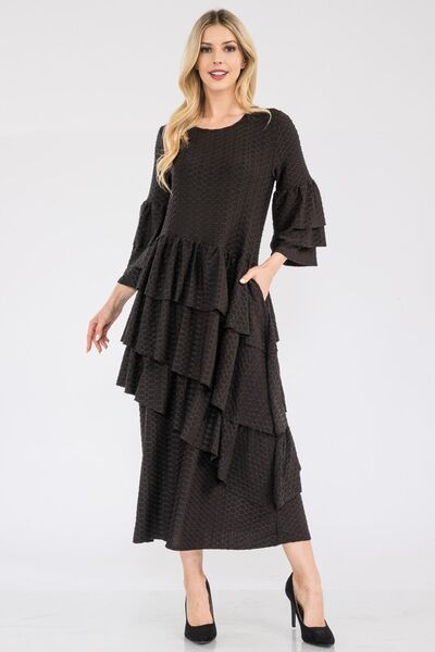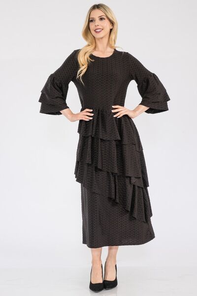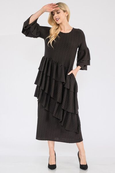 Celeste Full Size Honey Comb Asymmetrical Ruffle Midi Dress Plus Size
