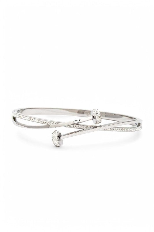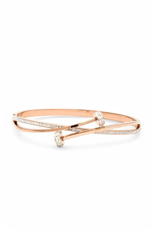 Crystal Pave Nail Designed Stainless Steel Bangle