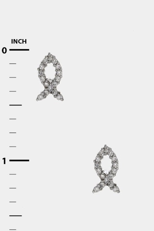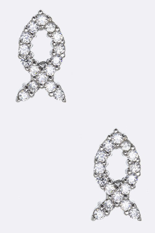 Cubic Zirconia Ichthus Stud Earrings