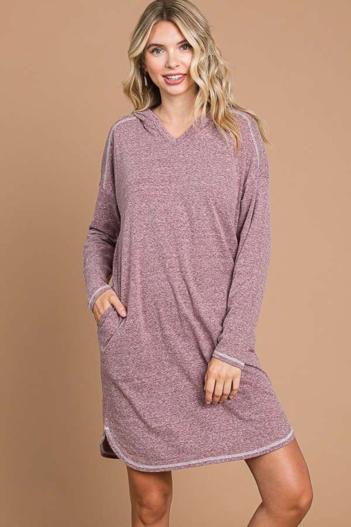 Culture Code Full Size Hooded Long Sleeve Sweater Dress