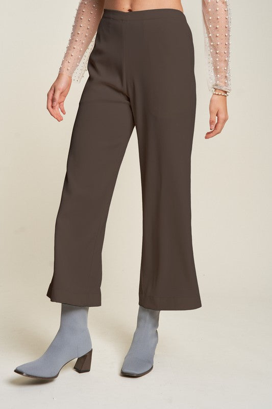 Wide leg mid-rise pants feature a relaxed and flowing silhouette, with the legs wider from the thigh down to the hem. The mid-rise waist sits between the high waist and low waist, offering a comfortable fit around the natural waistline. These pants are versatile and can be dressed up or down for various occasions, providing a stylish and flattering look. The wide leg style offers a modern and chic aesthetic while ensuring ease of movement and comfort throughout the day. These pants are a trendy and timeless addition to any wardrobe, suitable for both casual and more formal settings.