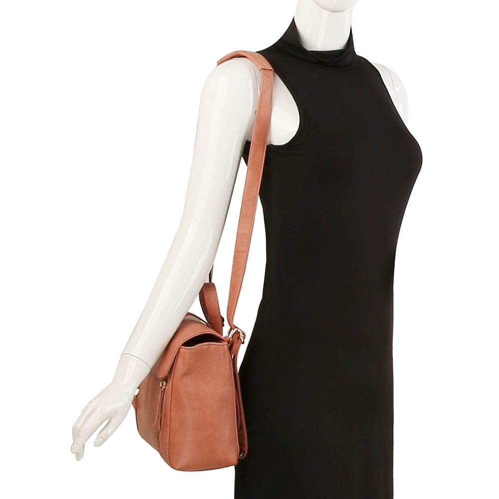 DIONA J FASHION SMOOTH BUCKLE ZIPPER CONVERTIBLE LEATHER BACKPACK COLOR BROWN