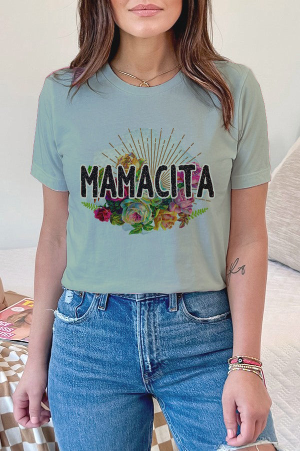 Diona J Mother's Day Mamacita Graphic Tee Shirt Short Sleeve Size L Ash Grey