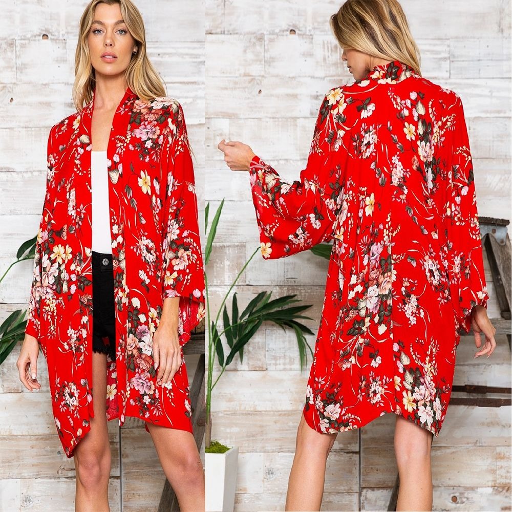 DIONA J THAILAND FLORAL KIMONO ONE SIZE COLOR RED
