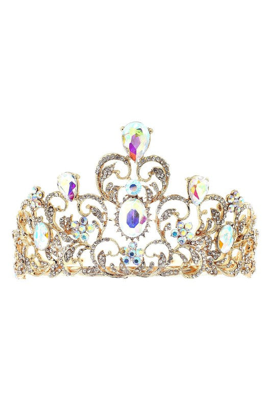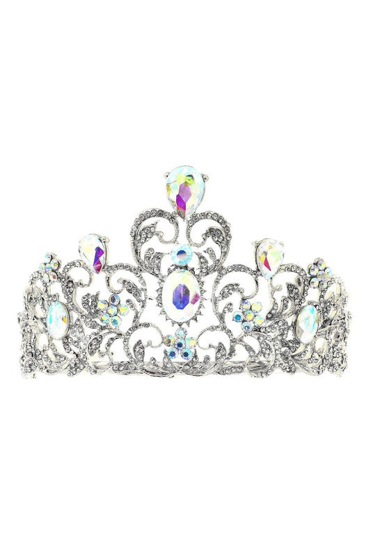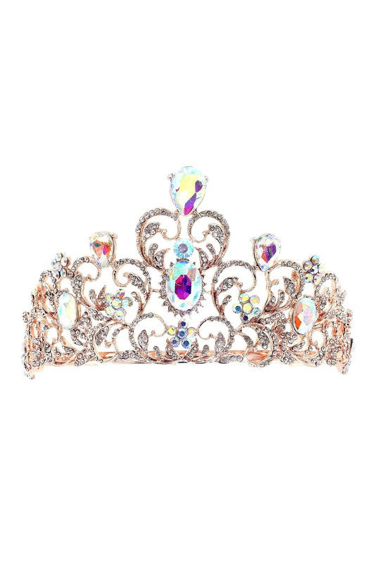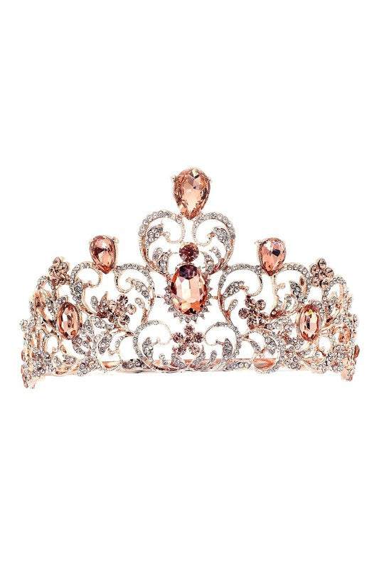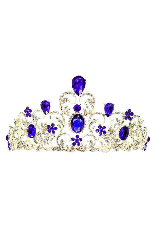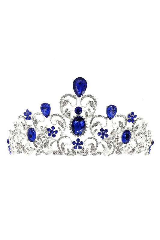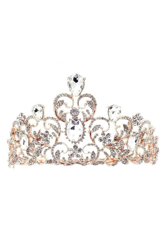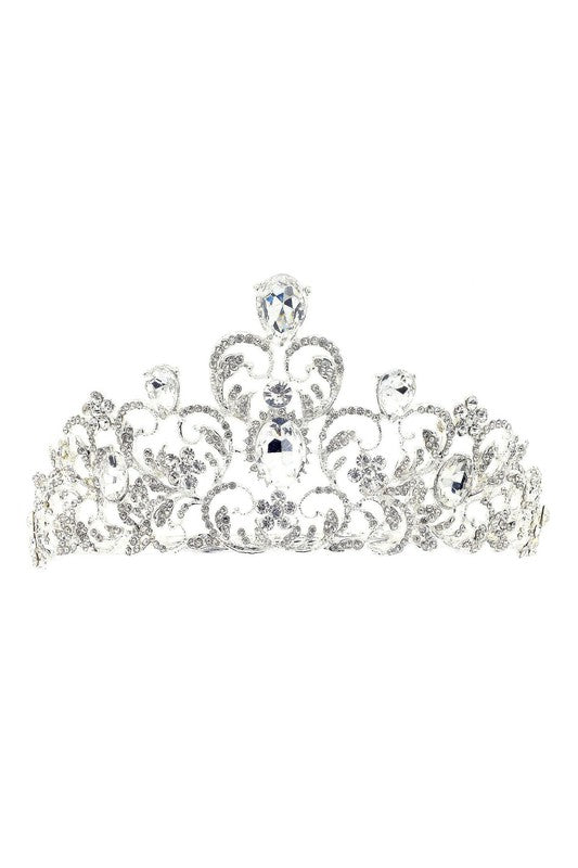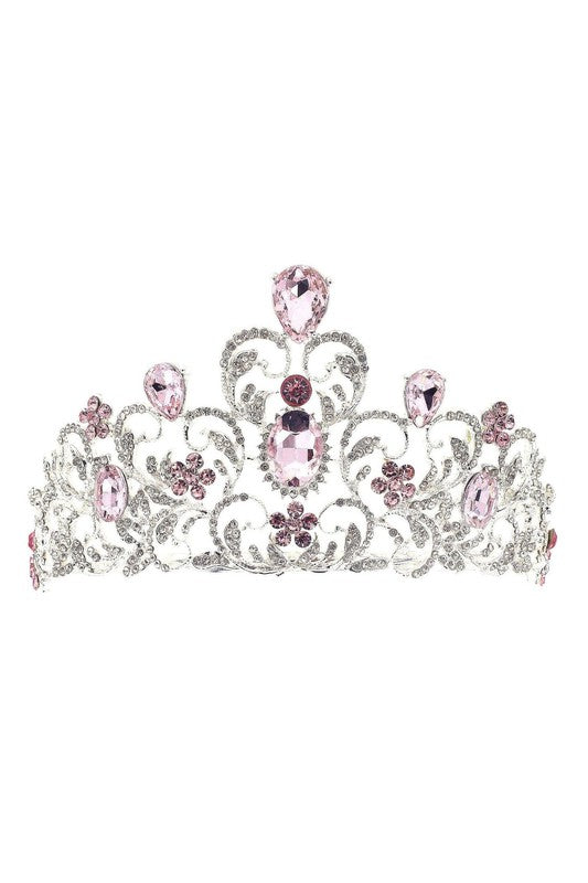 - Rhinestone Casting Tiara with Flower Embellishment in Oblong Shape