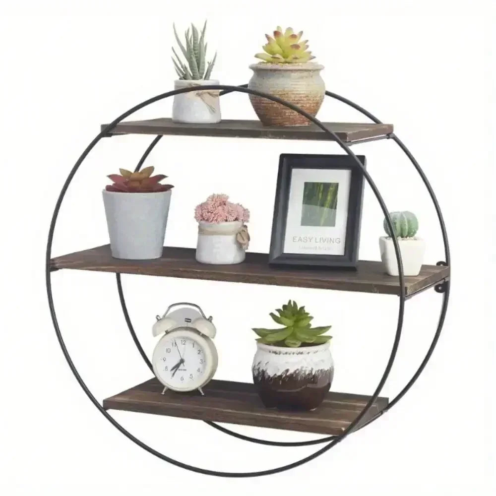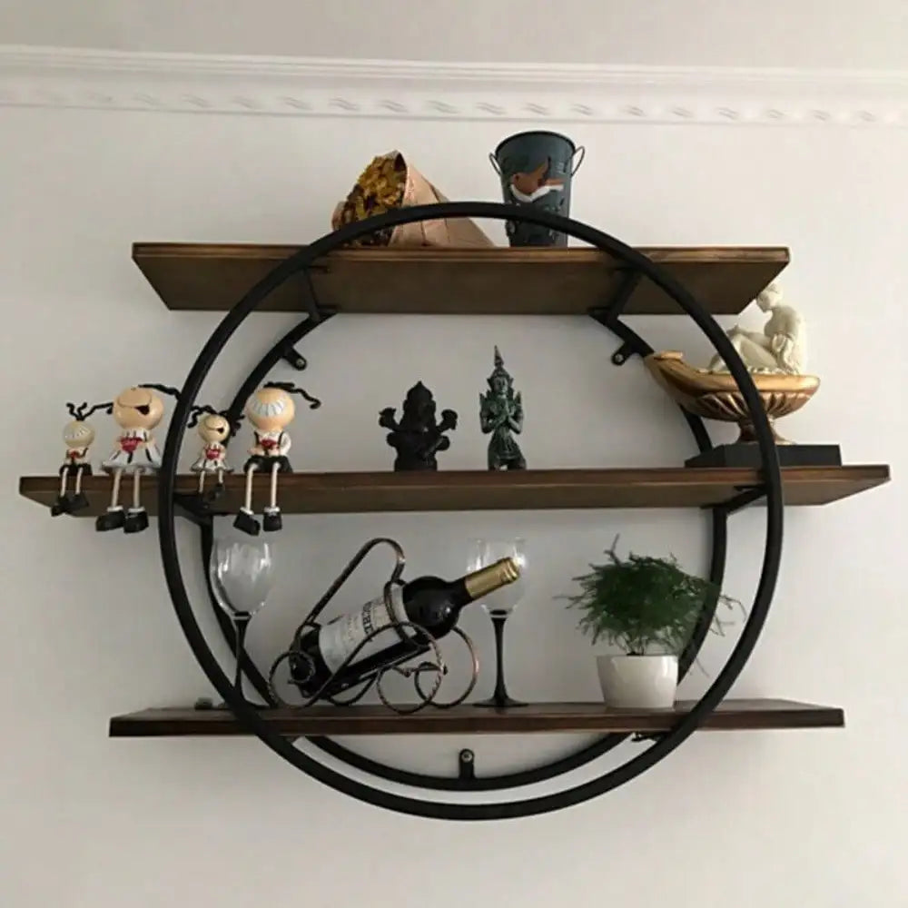 Heavy Decorative Geometric Circle Metal Floating Shelves Rustic