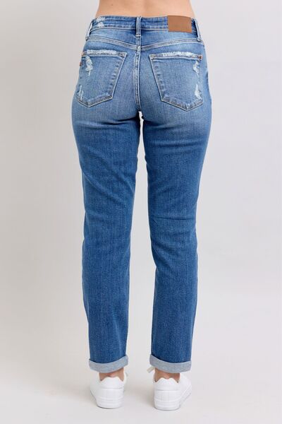 Judy Blue Full Size Button Fly Distressed Jeans with Pockets Plus Size