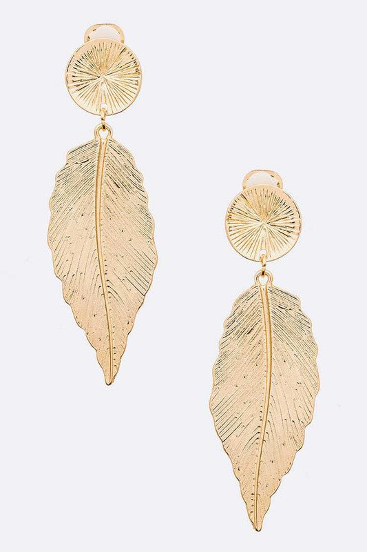 Leaf Textured Statement Clip On Earrings