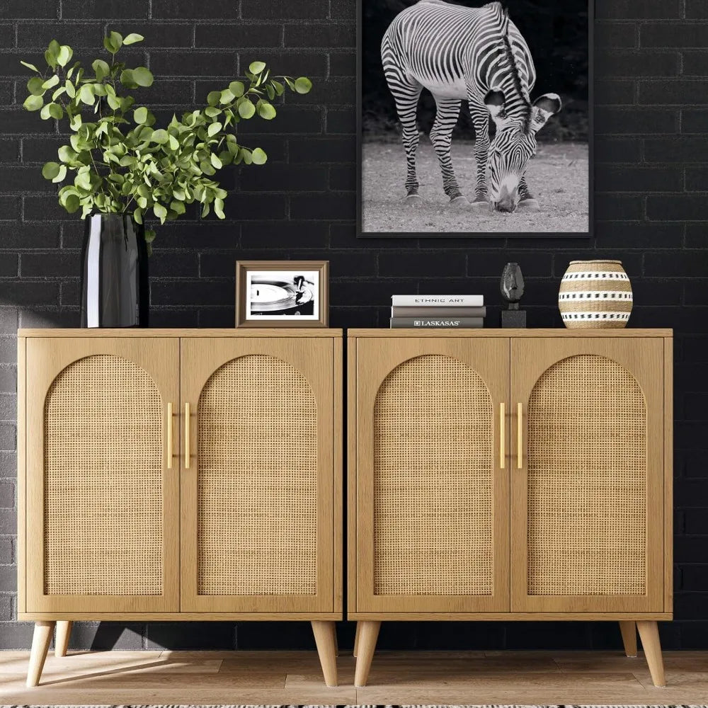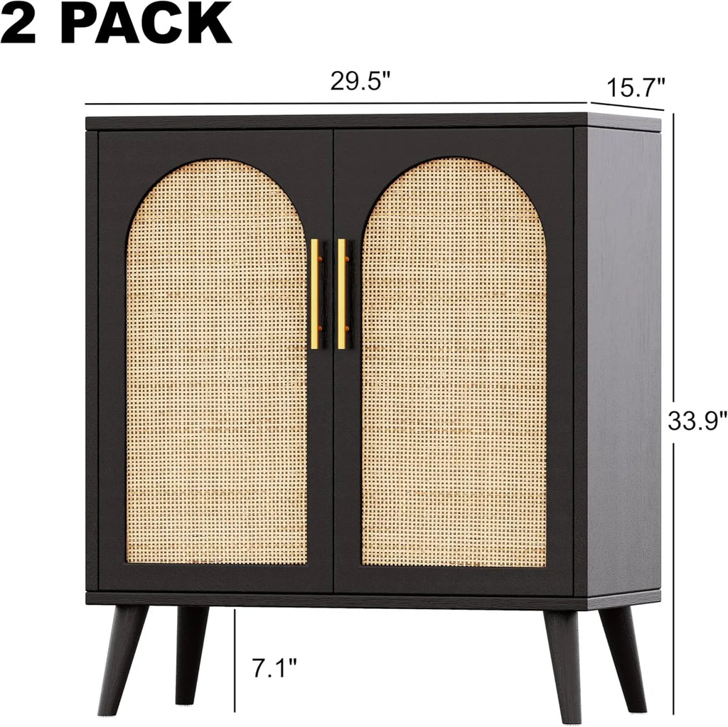 Living room cabinet,Set of 2 Rattan Storage Cabinet with Doors, Accent Bathroom Floor Cabinet, Modern Sideboard Buffet Cabinet