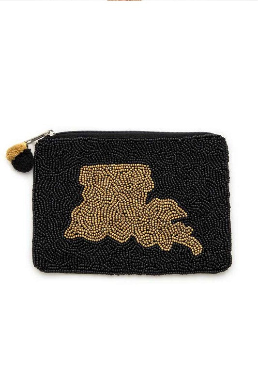 Louisiana State Map Beaded Zip Pouch