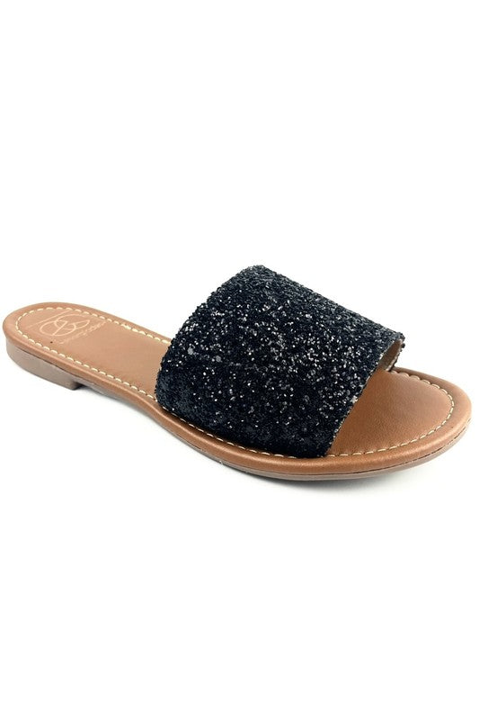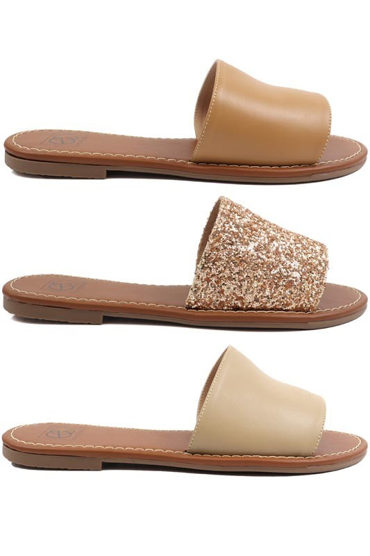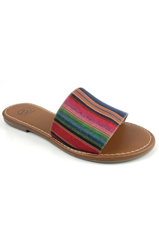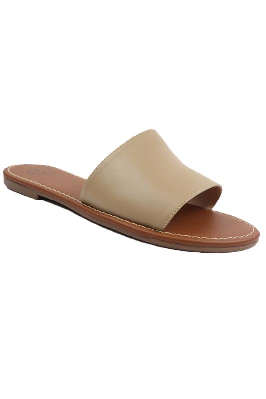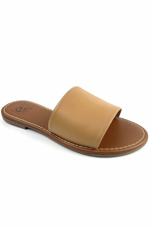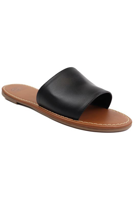 Handmade one band slide sandal with a lightly padded insole