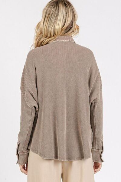 Mittoshop Mineral Wash Waffle Knit Collared Neck Henley Top