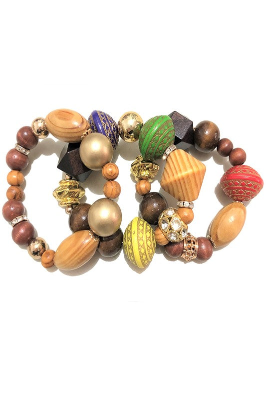Mix Wooden Beads Stretch Bracelet Set