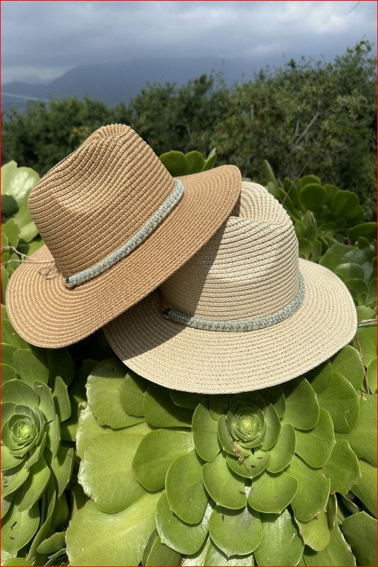 MULTI COLOR BRAIDED BAND PANAMA HAT