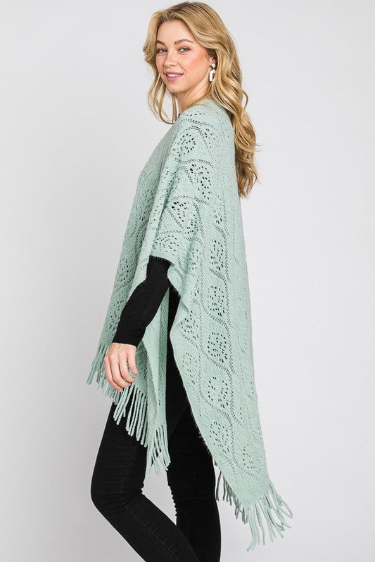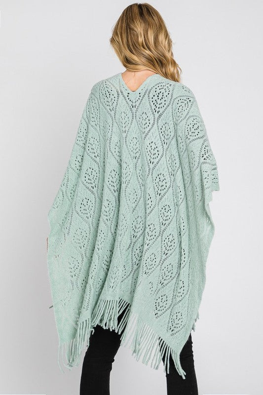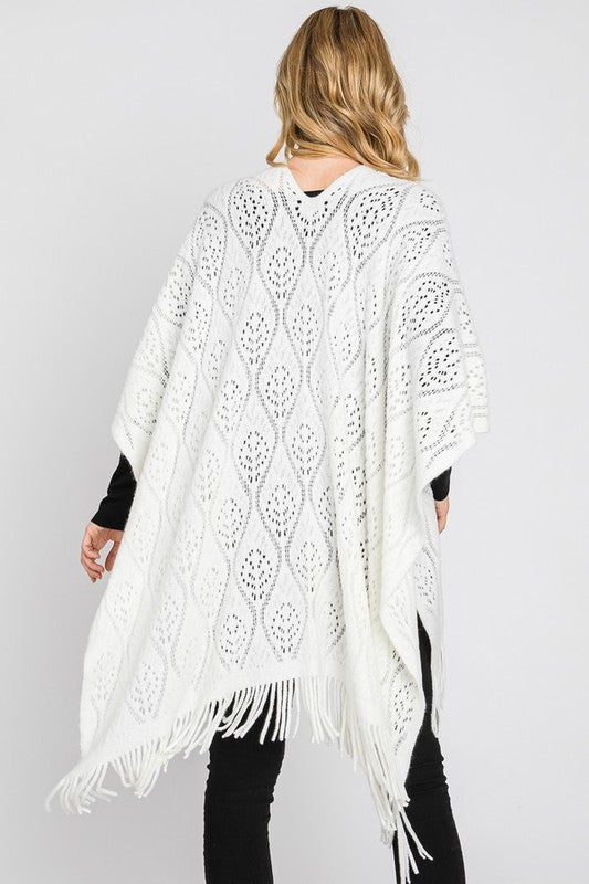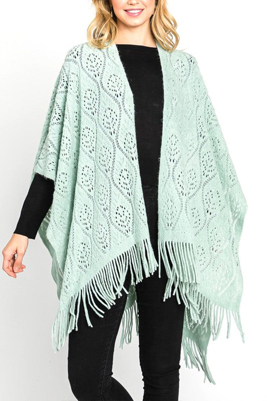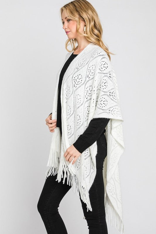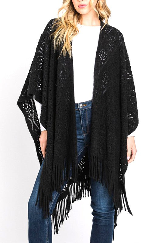 Perforated Pattern Knit Fringe Cardigan