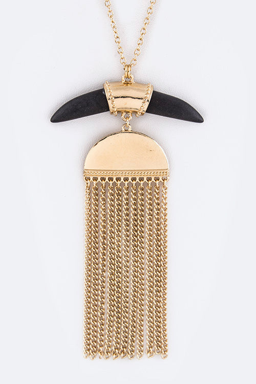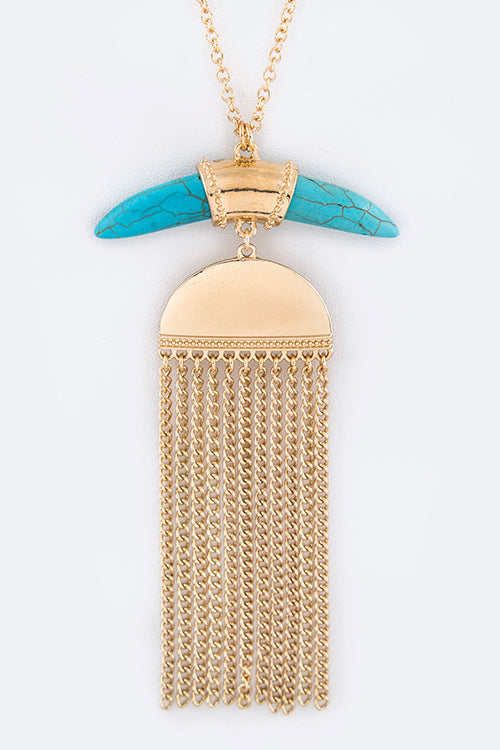 Precious Stone Horn & Chain Drop Necklace Set
