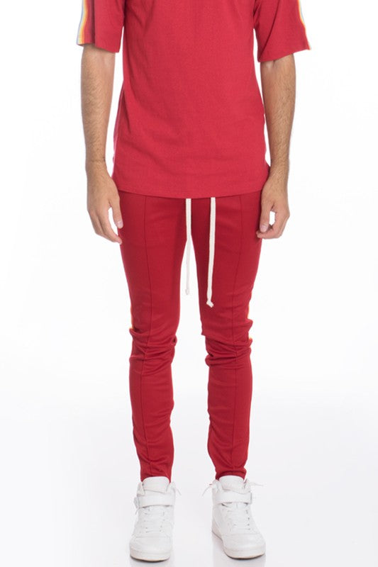 * Featuring Full Length, Skinny Fit, Solid, Drawstring, Elastic Waistband, Zippered at Bottom Hemline, Patterned Sides, Zippered Side Pockets, Single Pocket at Right Back, Stretched and Casual Style