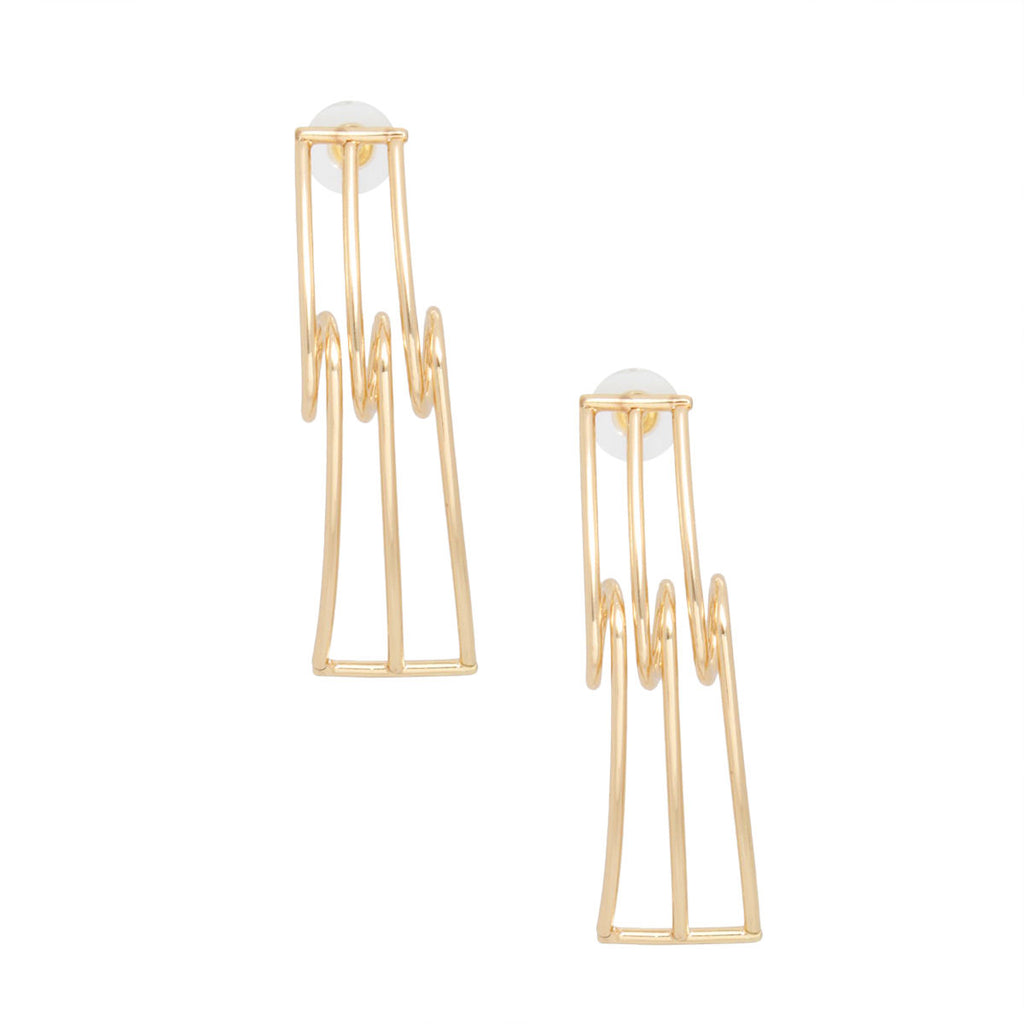 Women's Stud Earrings. Industrial-luxe Gold Metal 3 Row Open Spiral Spring Design Stud Earrings. Post Backing.